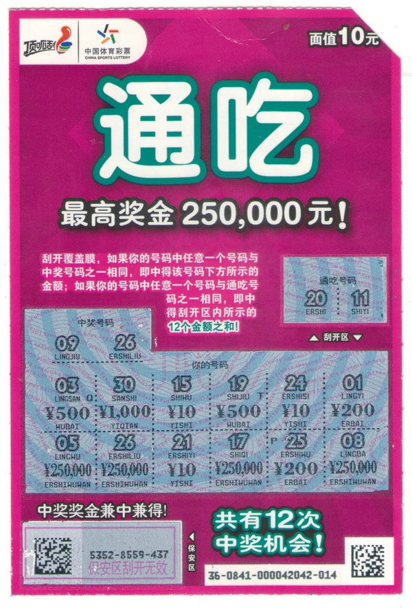 2023年“體彩新春季”大樂(lè)透和即開(kāi)型營(yíng)銷活動(dòng)還在進(jìn)行中,大樂(lè)透彩票出現(xiàn)7個(gè)“小夢(mèng)想 大樂(lè)透”符號(hào)、即開(kāi)型《巴山蜀水》彩票刮出“福氣”符號(hào),就能獲贈(zèng)一臺(tái)手機(jī)?!栋蜕绞袼凡势惫纬?ldquo;幸運(yùn)”符號(hào),還能獲贈(zèng)一臺(tái)時(shí)尚新能源汽車。各位購(gòu)彩者們快來(lái)體彩實(shí)體店試試手氣吧!