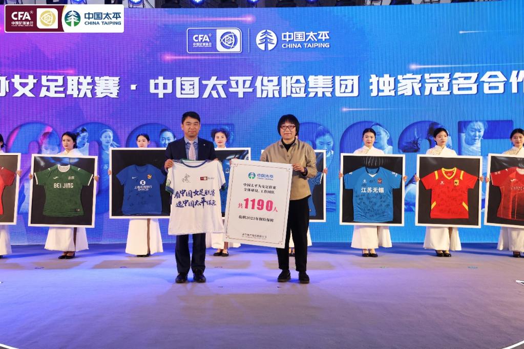 在發(fā)布會(huì)現(xiàn)場(chǎng),中國(guó)太平向女足聯(lián)賽全體球員、工作團(tuán)隊(duì)共1190人贈(zèng)送2023年保險(xiǎn)保障;孫雯代表女足聯(lián)賽將現(xiàn)場(chǎng)簽名的女足聯(lián)賽紀(jì)念衫和12支女超球隊(duì)全體球員簽名的球衣贈(zèng)予中國(guó)太平,中國(guó)足協(xié)還向中國(guó)太平授予“中國(guó)足協(xié)女足聯(lián)賽卓越貢獻(xiàn)獎(jiǎng)”。