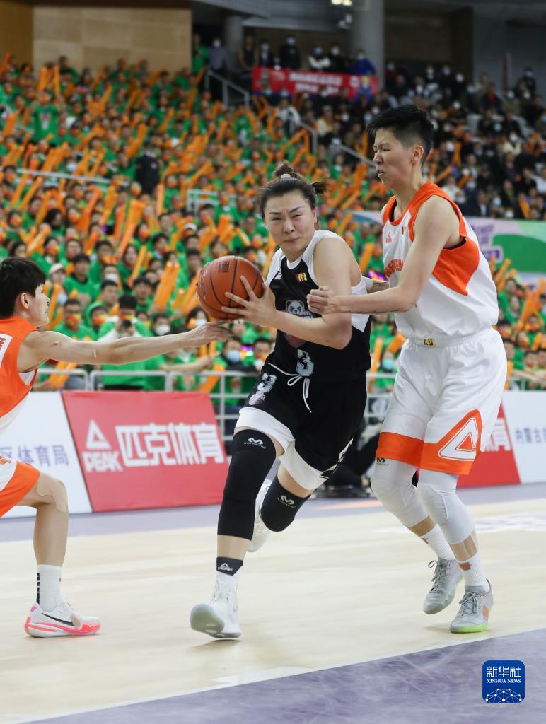 3月7日,四川遠(yuǎn)達(dá)美樂隊球員趙雪同(中)在比賽中突破。新華社記者 王楷焱 攝