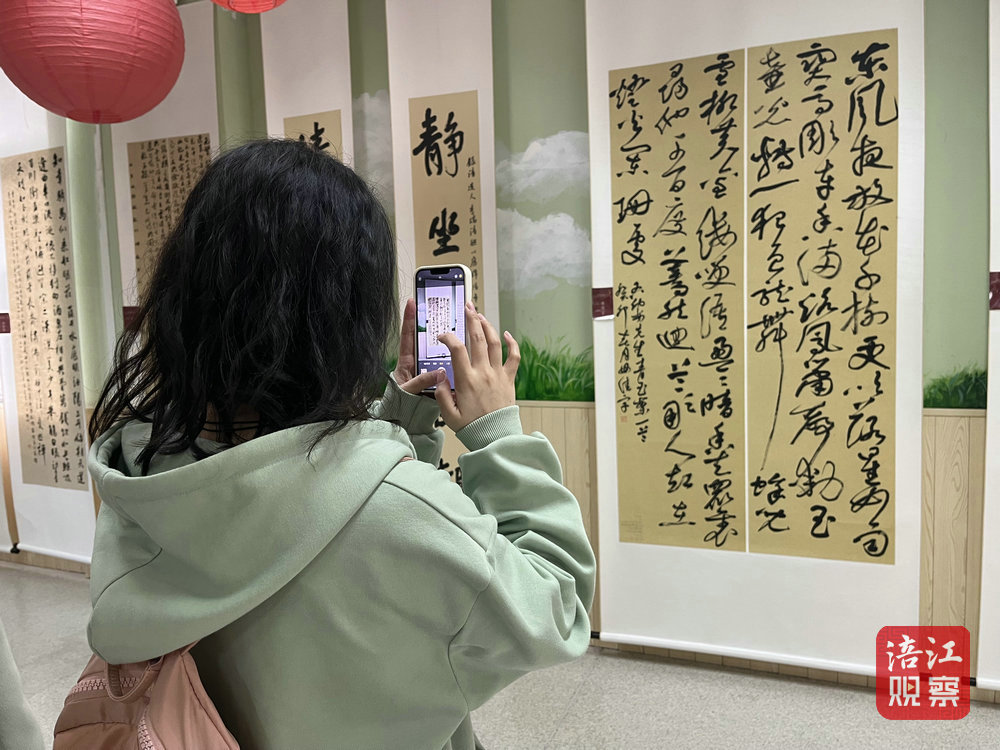 展覽現(xiàn)場,書法作品吸引市民駐足觀看,女書法家們還帶領(lǐng)少年宮的小朋友一起書寫“春”字,用筆墨迎接最美三月。本次展覽將持續(xù)至3月20日。