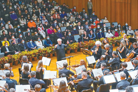 北京觀眾調動起全部熱情迎接俄羅斯藝術家的到來。上周,三場音樂會剛剛開票就全部售罄,國家大劇院的網(wǎng)站甚至因購票人數(shù)過多而一度“癱瘓”。這份心意被藝術家們以音樂的形式巧妙回應。音樂會開篇,在中國觀眾心目中占據(jù)著特殊地位的《紅旗頌》率先奏響。這是沒有出現(xiàn)在曲目單上,甚至在演出當天下午采訪時也未被捷杰耶夫提及的驚喜。當熟悉的旋律響起,觀眾們驚呼出聲,繼而興奮地鼓起掌來,澎湃激昂的音樂跨越了一切阻礙,訴說著中俄兩國的深厚友誼。