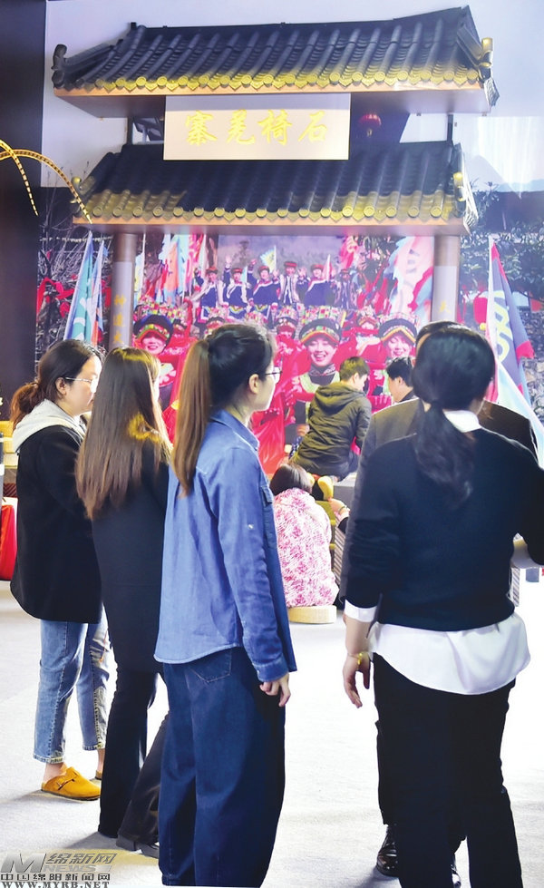 而在他的身后,是“搬”到展銷會(huì)現(xiàn)場(chǎng)的石椅羌寨大門(mén),配上進(jìn)寨儀式的照片,讓佛山市民有身臨其境的感覺(jué)。