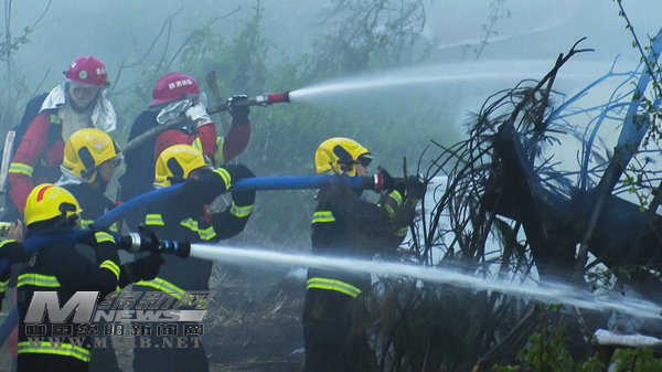 消防員對(duì)火勢(shì)進(jìn)行撲救