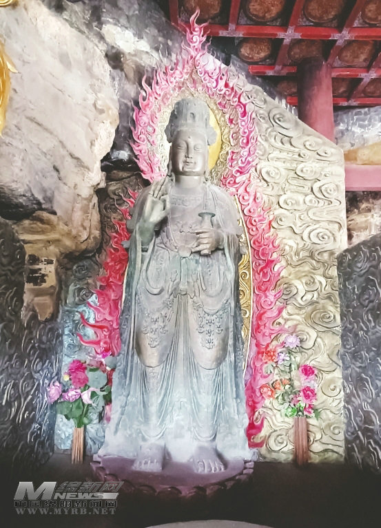 在碧水寺,因為觀音殿內(nèi)碧水崖上的摩崖造像和石刻,以及原青義搬遷來的千佛崖摩崖造像、原開元寺的觀音像,故被稱為隋唐時期的文化秘境。