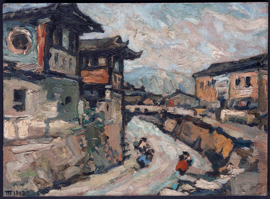 新中國成立后,胡一川多次帶著油畫箱和畫布返鄉(xiāng),竭盡全力去描繪縈繞心田的家鄉(xiāng)美景。《我的故鄉(xiāng)》《蘆下壩水電站》《龍巖富礦》《閩西探寶》等作品都表達(dá)了胡一川對家鄉(xiāng)的赤忱熱愛,以及對家鄉(xiāng)建設(shè)的自豪之情。同時,《廈鼓輪渡》《鷺江》《崖邊石門》等關(guān)于廈門的作品,更是書寫著胡一川與夫人黃君珊的愛情故事。這一單元還聚焦于胡一川在閩西、江西、廣東和浙江寫生的重要油畫風(fēng)景作品,展現(xiàn)了他忠誠耿介的家國赤子情。