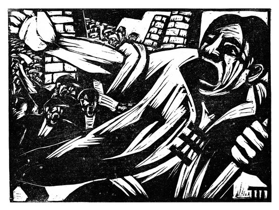 第一單元以“革命與抗戰(zhàn)的沖鋒號”為主題,展現(xiàn)了胡一川在各個戰(zhàn)場的“前線”,用刀和筆刻寫令人熱血沸騰的作品,發(fā)出那個時代震耳發(fā)聵的吼聲。