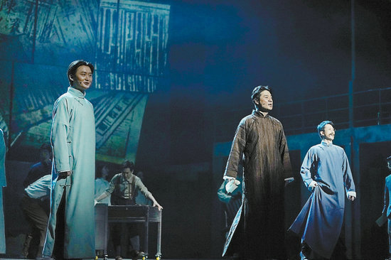 “每次排練,我們都會被蕩氣回腸的家國大義深深感動。”李大釗的飾演者劉思維說,“我們希望能通過自己的表演,把這種情緒、把愛國深情傳遞給更多觀眾。” 4月28日至5月7日,這部作品將在世紀劇院迎來首輪演出。(記者 高倩 方非攝)
