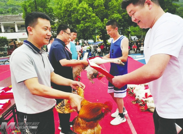 為獲獎(jiǎng)?wù)甙l(fā)放獎(jiǎng)品——跑山雞