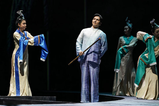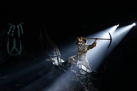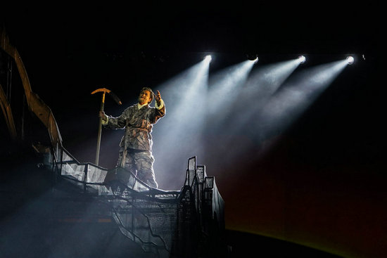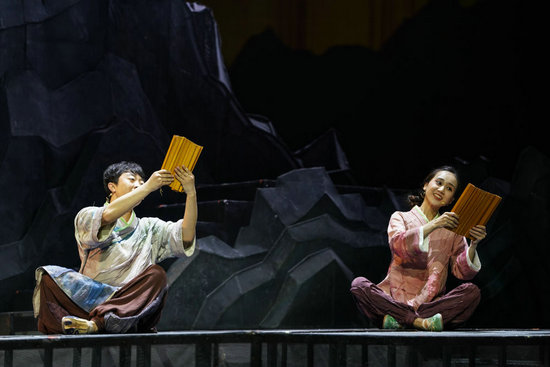5月27日,大型說(shuō)唱音樂(lè)劇《愚公移山》在位于北京的中央歌劇院首演。音樂(lè)劇《愚公移山》是2022年度河南省重點(diǎn)文藝創(chuàng)作項(xiàng)目,由濟(jì)源產(chǎn)城融合示范區(qū)黨工委宣傳部、文化廣電和旅游局出品,北京大學(xué)民族音樂(lè)與音樂(lè)劇研究中心創(chuàng)制。全劇采用說(shuō)唱的藝術(shù)形式,以傳承和弘揚(yáng)愚公移山精神為線索,講述了當(dāng)代大學(xué)生將傳統(tǒng)文化納入現(xiàn)代視野,不斷打造新生活、開(kāi)拓新境界的新時(shí)代奮進(jìn)故事。新華社記者 彭子洋 攝影報(bào)道