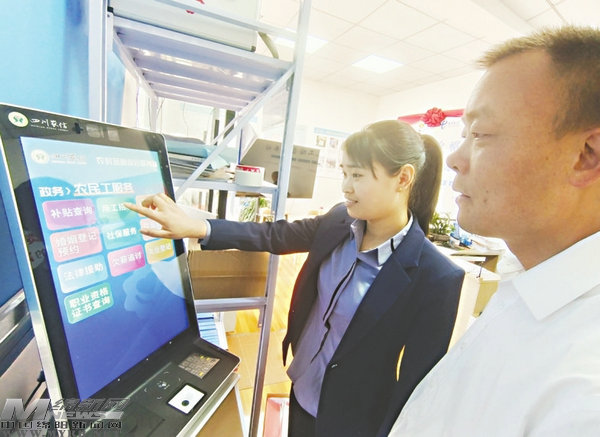 據(jù)了解,為了讓區(qū)內5萬余農(nóng)民工在“家門口”就能體驗“高效、快捷”的一站式快捷服務,綜合服務站整合電信網(wǎng)點、快遞公司等現(xiàn)有資源,在交通便捷、農(nóng)民工集聚的村級陣地建成集“農(nóng)民工服務站+電信服務點+郵政網(wǎng)點+金融服務點”四位一體的農(nóng)民工綜合服務站,依托“四川農(nóng)民工服務平臺”開展農(nóng)民工政策宣傳、就業(yè)招聘等網(wǎng)上政務服務,利用電信“數(shù)字鄉(xiāng)村平臺”“IPTV”平臺為農(nóng)民工提供出行購票、學費繳納等便捷生活服務,依托郵政物流網(wǎng)絡開展農(nóng)資農(nóng)產(chǎn)品銷售和工業(yè)品下鄉(xiāng)服務,安裝農(nóng)商行自助服務終端提供賬戶查詢、小額取款等基礎金融服務(如圖)。