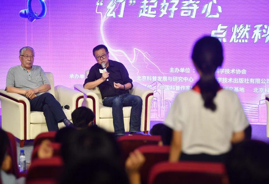 科幻有預(yù)言功能嗎?《流浪地球》中“冬眠”那樣的科幻技術(shù)會影響人類的發(fā)展方向嗎?優(yōu)秀科幻作品如何帶給讀者強烈的代入感?昨天,一場科幻大師與中學(xué)生之間的對話在中國科幻大會上演。作為中國科幻大會的重要組成部分,“首都青少年科幻嘉年華”在首鋼園和北京科學(xué)中心舉辦,其中的“大師對話”環(huán)節(jié)邀請著名科幻作家劉慈欣、王晉康,與第42屆北京青少年科技創(chuàng)新大賽科幻畫獲獎?wù)呒鞍儆嗝袑W(xué)生進行了科幻對話。