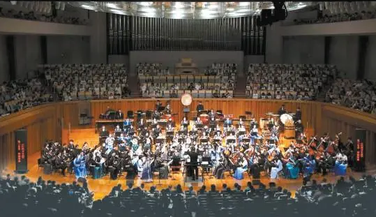23日晚,在大運(yùn)河申遺成功9周年之際,來自大運(yùn)河沿途八省市的民族樂團(tuán)的130位演奏家在指揮家譚利華的指揮下,聯(lián)袂奏響了民族交響詩(shī)《大運(yùn)河》。