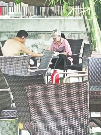 “膀爺”旁若無(wú)人地喝茶
