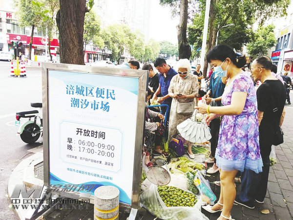 今年5月,為了平衡市容市貌管理和便利群眾生活,實現(xiàn)城市文明和市井生活“雙向奔赴”,涪城區(qū)經(jīng)過調(diào)研并征求居民意見,在一環(huán)路南段干休所外設立了便民“潮汐市場”,市場內(nèi)實行劃線定點管理,各攤位長度1米,每名攤販限用一個攤位,一攤一框,經(jīng)營時間為6時至9時、17時至20時,農(nóng)戶也可以在這里銷售自產(chǎn)的瓜果蔬菜或其他農(nóng)副產(chǎn)品。