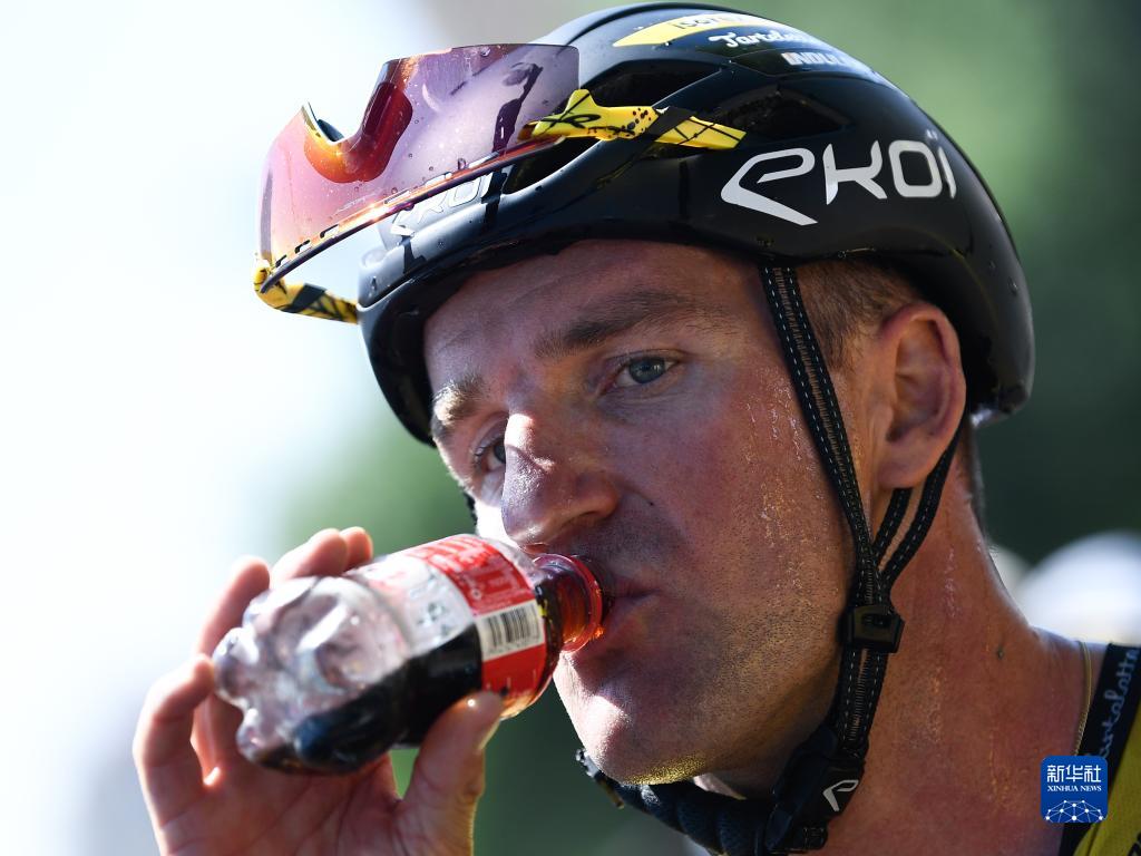 7月9日,比利時塔特雷托-艾索雷斯車隊選手蒂莫蒂·杜邦在賽后補給。新華社記者 張龍 攝
