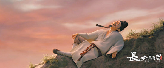 《長安三萬里》的片名來自明代陳子龍《從軍行》中的“夢到長安三萬里,海風(fēng)吹斷磧西頭”。這個片名也點出了影片主題:“長安”代表高適、李白等人心中的“理想之地”,而“三萬里”是他們與理想之間的距離。