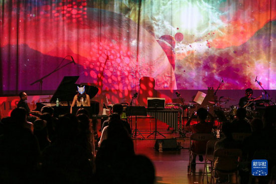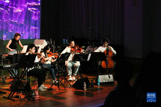 這是7月11日拍攝的音樂會現(xiàn)場。當日,“極地游樂場——王斐南流行室內(nèi)樂融合劇場”在上海舉辦。作為2023上海夏季音樂節(jié)一系列演出之一,音樂家們?yōu)橛^眾演繹了一場多維融合的室內(nèi)樂作品音樂會。(新華社記者 辛夢晨 攝)
