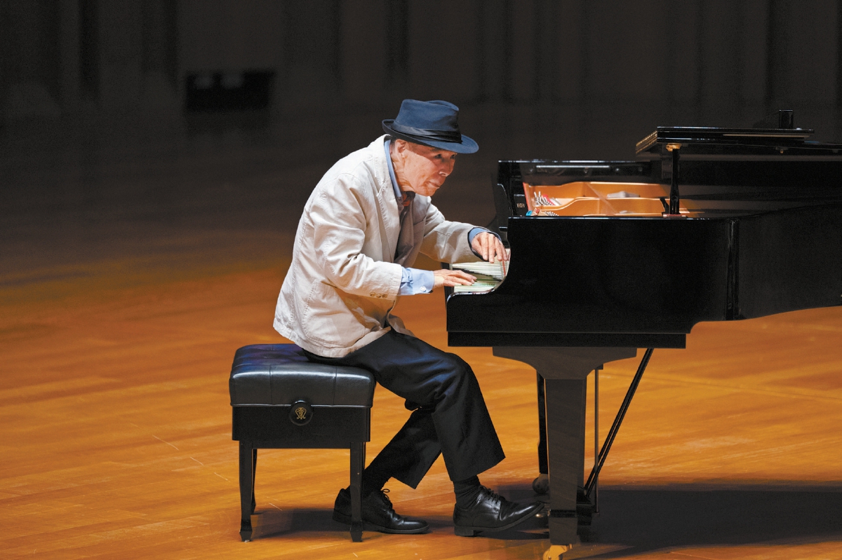 89歲高齡的日本爵士泰斗菅野邦彥走上舞臺(tái),小黑帽,白西裝,腳步不快,脊背輕微有些佝僂,但手里的“小玩具”透露出老爺子的俏皮心思。扶著鋼琴,菅野邦彥向觀眾深深鞠了標(biāo)志性的一躬,隨后開啟了他輕巧的演奏。