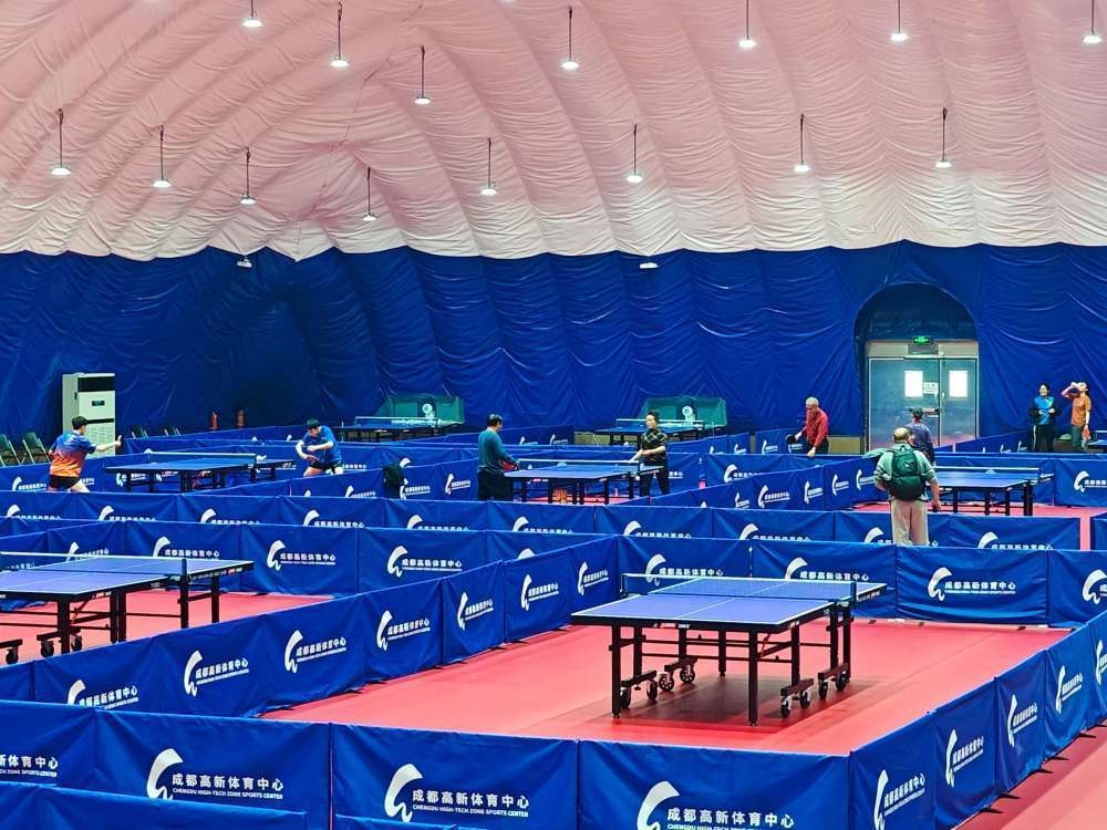 3月1日,人們?cè)诔啥几咝麦w育中心多功能館的臨時(shí)訓(xùn)練氣膜館練習(xí)打乒乓球。該臨時(shí)訓(xùn)練氣膜館采用輕型裝配式氣膜結(jié)構(gòu),利用氣壓來(lái)支撐,無(wú)需任何梁、柱,可得到更大的完全凈空的建筑空間,具有節(jié)約能源、減少水資源消耗、降低二氧化碳排放量、延長(zhǎng)使用壽命、降低建筑物運(yùn)行成本、促進(jìn)可持續(xù)發(fā)展等優(yōu)點(diǎn)。新華社發(fā)(陳坤 攝)