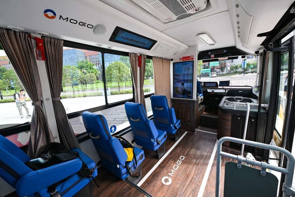 這是7月15日拍攝的大運(yùn)村自動(dòng)駕駛巴士?jī)?nèi)部。新華社記者 王曦 攝