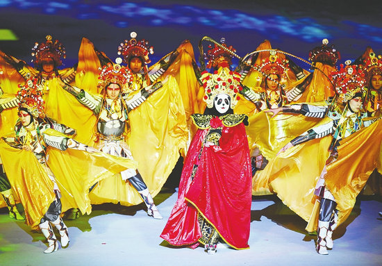 7月28日,演員在大運會開幕式上表演川劇變臉。(新華社 發(fā))