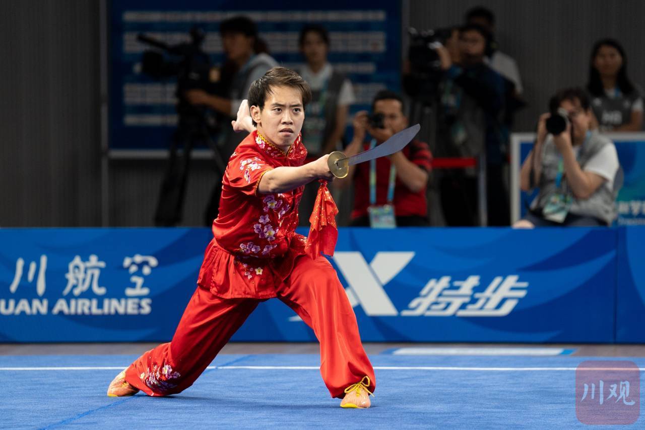7月30日下午,中國(guó)選手金哲典憑借9.716分的優(yōu)異成績(jī),摘得本屆成都大運(yùn)會(huì)男子刀術(shù)項(xiàng)目金牌。這是金哲典繼7月29日男子長(zhǎng)拳項(xiàng)目后在本屆成都大運(yùn)會(huì)獲得的第二枚金牌,他也由此成為繼曹茂園、陳小麗后,中國(guó)隊(duì)在成都大運(yùn)會(huì)武術(shù)項(xiàng)目上的第三位“雙冠王”。