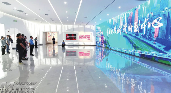 “行進(jìn)涪江·川渝九地高質(zhì)量發(fā)展媒體調(diào)研行”聯(lián)合采訪組記者采訪中國(綿陽)科技城創(chuàng)新館