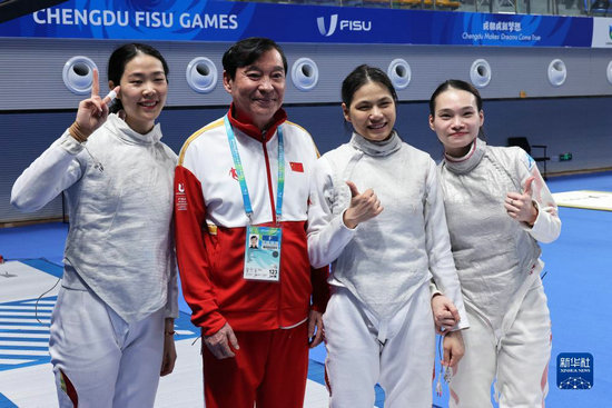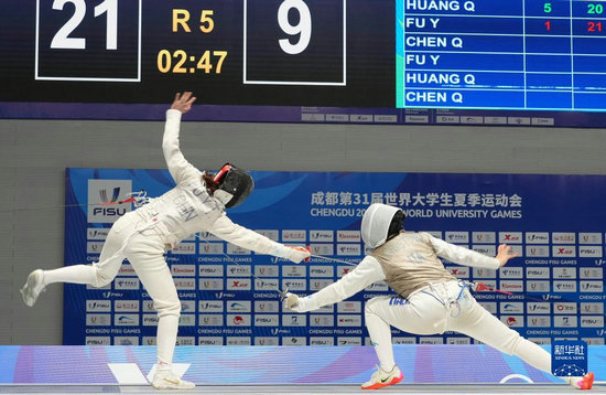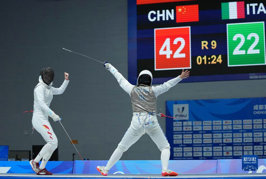 當日,在成都舉行的第31屆世界大學生夏季運動會擊劍女子花劍團體金牌賽中,中國隊以45比22戰(zhàn)勝意大利隊,獲得金牌。