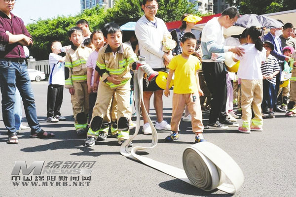 在消防員的指導(dǎo)下,不少小朋友零距離接觸器材裝備并親手操作。“我終于戴上了真正的消防頭盔,看到了好多的消防車,長大后我也要當(dāng)一名勇敢的消防員!”小朋友賈銘芯說。(綿報融媒記者 任明勇 文/圖)