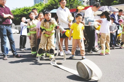 參觀過程中,消防車兩側(cè)的器材箱收獲了小朋友們最多的驚呼:“消防車好像魔法口袋,什么都有!”消防宣講員逐一介紹車輛、車載個人防護(hù)裝備的名稱、性能和用途等,同時結(jié)合校園、家庭消防安全要點(diǎn),用通俗易懂的語言講解消防安全知識以及逃生自救知識。面對各種消防救援作戰(zhàn)服,小朋友們個個躍躍欲試,在消防員的指導(dǎo)下,小朋友們穿上滅火救援服、戴上消防頭盔,登上云梯車、坐上救援車,變身“小小消防員”。