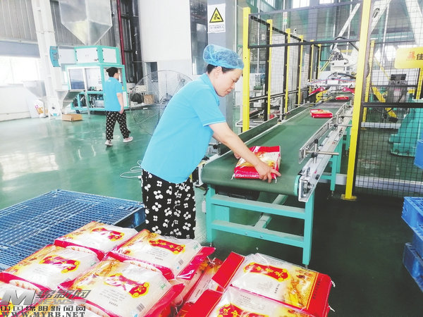 在四川臺沃香食品有限公司車間內(nèi)機器轟鳴,智能化全自動大米生產(chǎn)線上,烘干的稻谷被自動吸入機器內(nèi),經(jīng)過不同的機組,一步步完成稻谷到大米的蛻變,再裝入袋密封,分類碼垛,最后銷往全國各地。