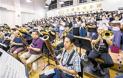 由市委宣傳部、市文化和旅游局主辦,天津交響樂團攜交響詩篇《長城》,將于8月30日登陸國家大劇院。昨天,中央音樂學院合唱團、北京音樂家協(xié)會合唱團、天津音樂學院青年合唱團、天津交響樂團(附屬)合唱團與樂團演奏家組成的近300名參演人員,由樂團團長、指揮家董俊杰攜領(lǐng),在天交排練場進行了演出前的首次排練。