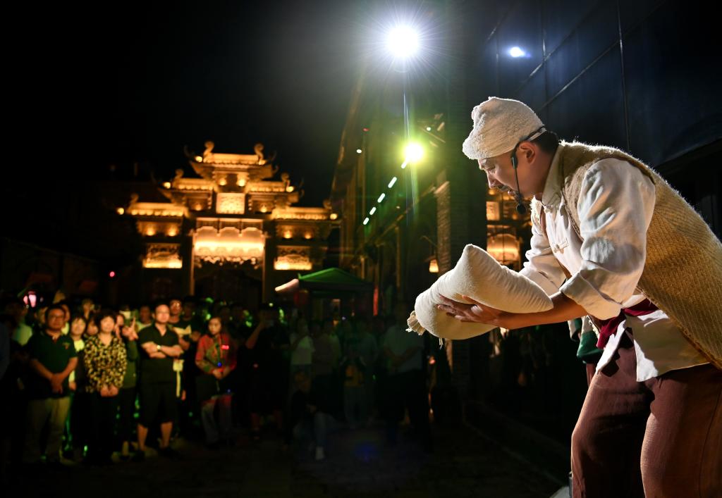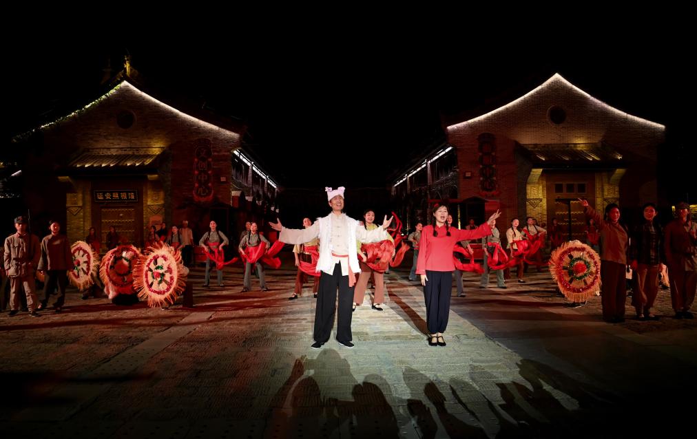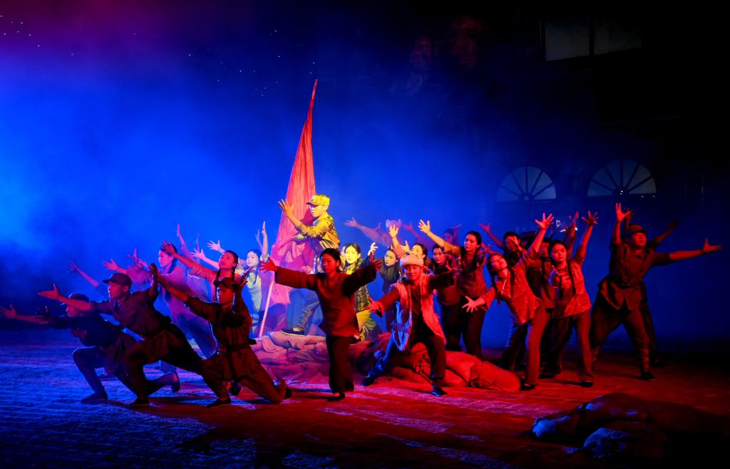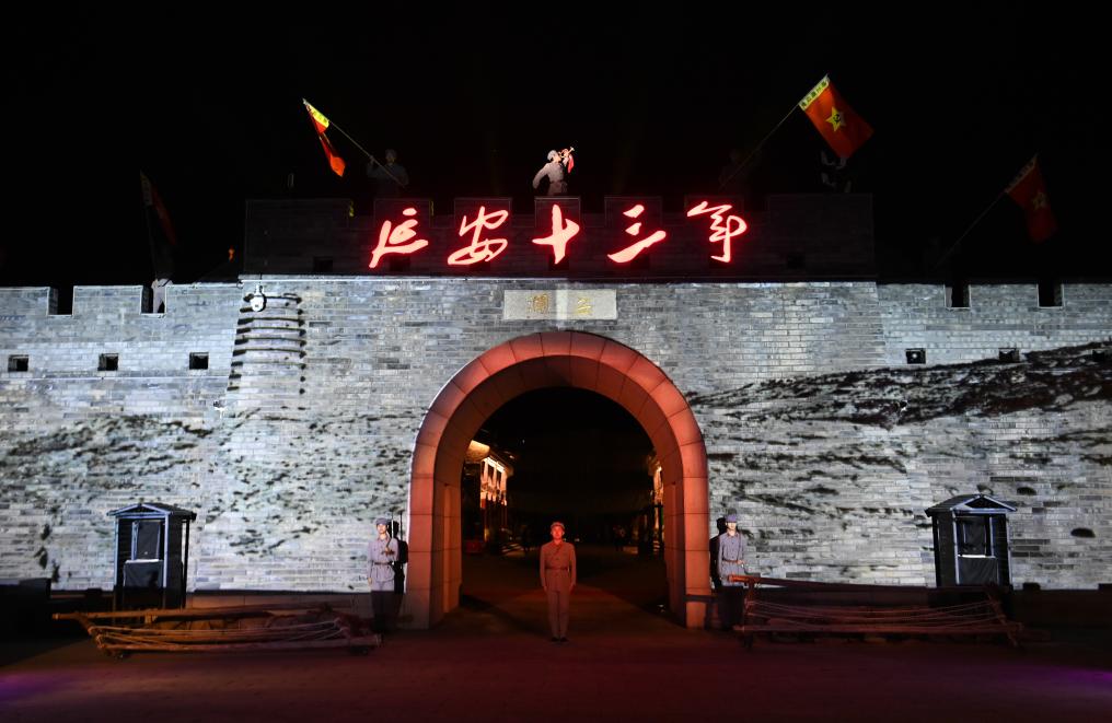 8月31日,演員在陜西延安的金延安文化旅游產(chǎn)業(yè)園區(qū)表演紅色歌舞劇《延安十三年》。新華社記者 鄒競一 攝