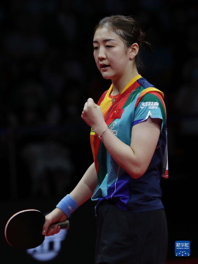 9月5日,中國(guó)隊(duì)選手陳夢(mèng)在比賽中慶祝得分。她以3比1戰(zhàn)勝韓國(guó)隊(duì)選手田志希。新華社發(fā)(李相浩攝)