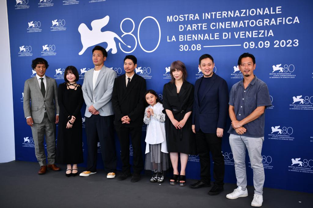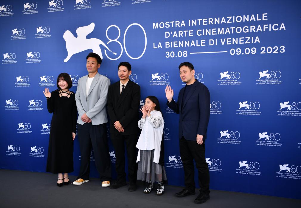 9月4日,電影《邪惡不存在》導(dǎo)演濱口龍介(右一)攜主創(chuàng)人員出席意大利威尼斯電影節(jié)拍照式。新華社記者 金馬夢妮 攝