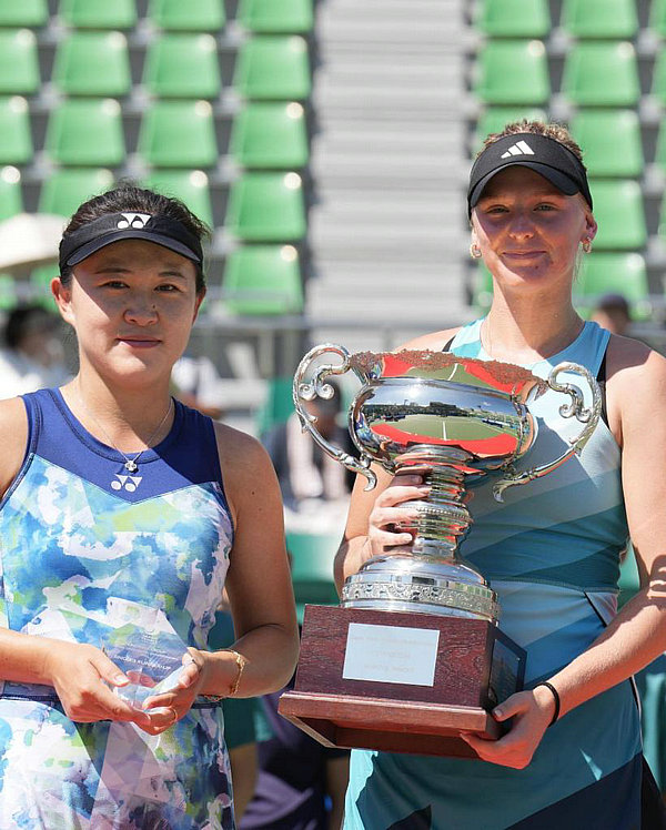 朱琳(左)和克魯格在頒獎儀式上。(圖片來自WTA國際女子網(wǎng)球協(xié)會官方微博)