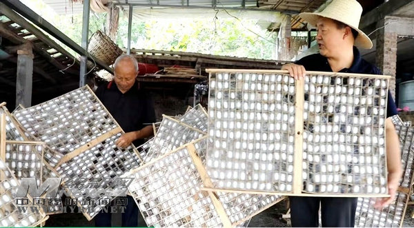 在觀義鎮(zhèn)銀針村,全村發(fā)展大小蠶桑養(yǎng)殖戶200余戶。這段時(shí)間,養(yǎng)殖戶的蠶房里掛滿了養(yǎng)蠶的方格櫥,方格櫥的格子上結(jié)滿了雪白的蠶繭,蠶農(nóng)們正在對(duì)蠶繭進(jìn)行清理雜質(zhì)、打掃衛(wèi)生,為出售蠶繭做好準(zhǔn)備。“我家栽桑樹(shù)10畝,每一季養(yǎng)5張蠶,一年養(yǎng)20張,今年秋季的蠶繭豐收了,每張平均的產(chǎn)值是二千七八,我還是滿意的。”村民馬朝林說(shuō)。