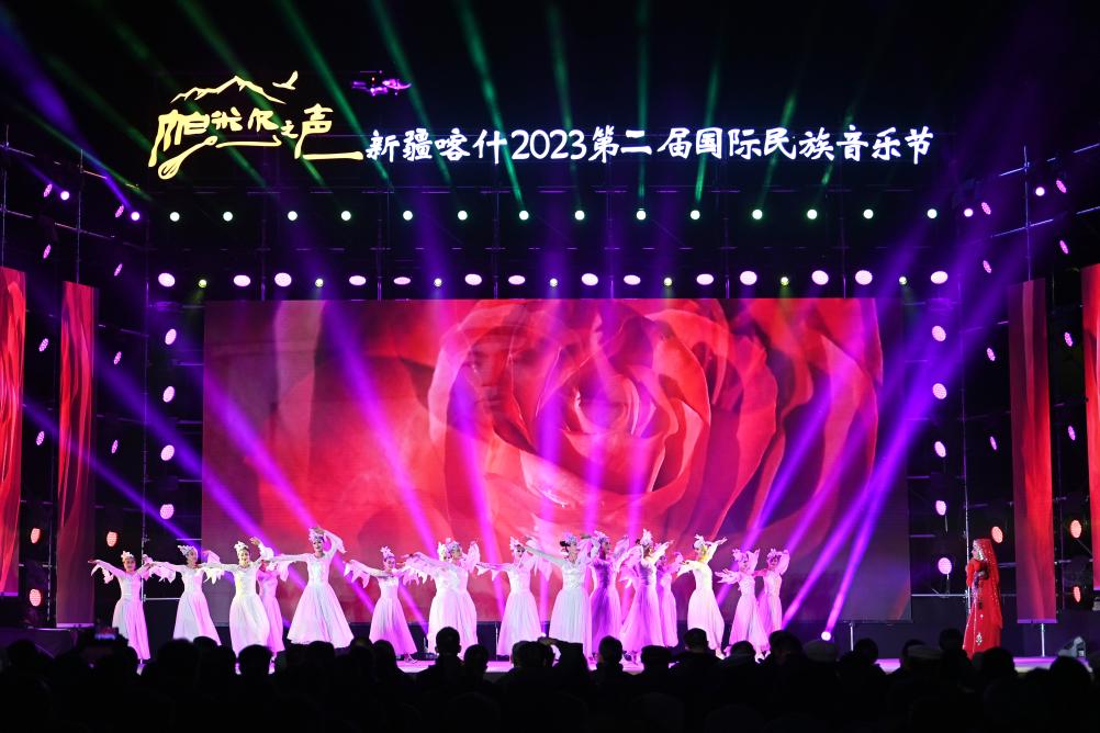 9月21日晚,帕米爾之聲·新疆喀什2023第二屆國際民族音樂節(jié)在塔什庫爾干塔吉克自治縣開幕。《花兒為什么這樣紅》《帕米爾之夜》《鷹笛之聲》等18個(gè)歌舞節(jié)目精彩紛呈,吸引數(shù)百名當(dāng)?shù)鼐用褚约坝慰颓皝碛^看。