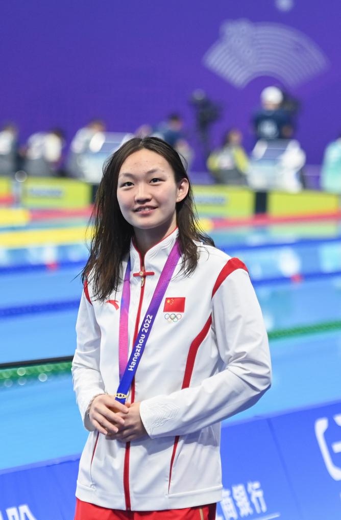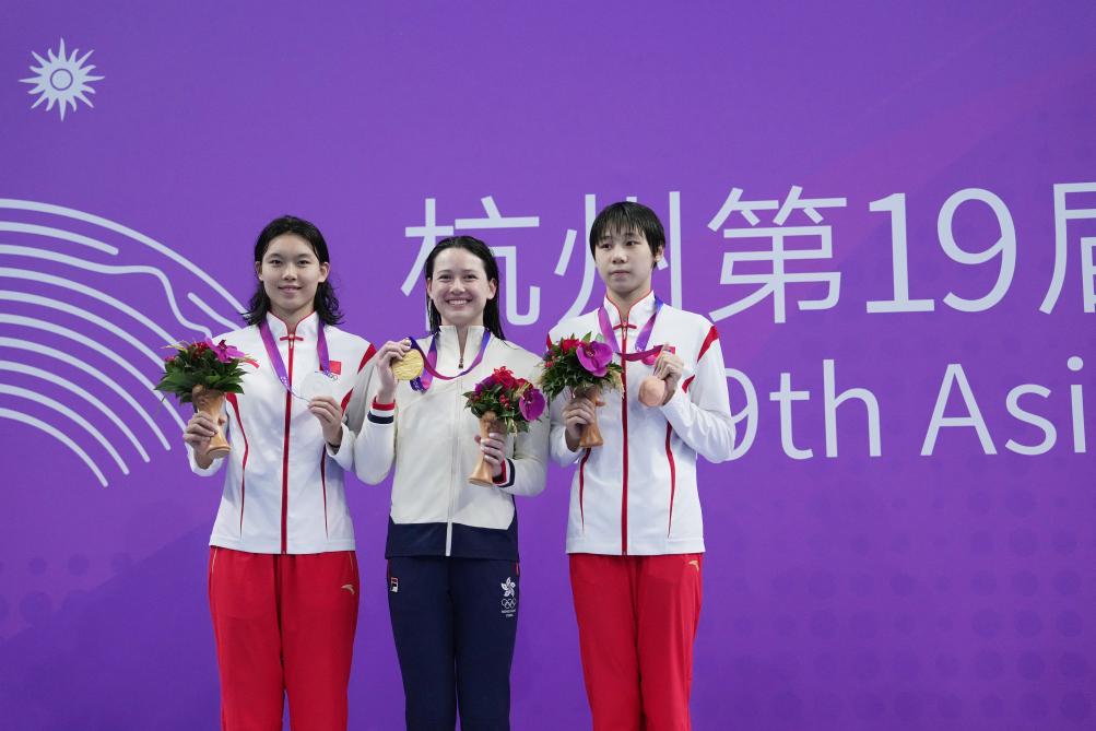 繼奪得中國(guó)香港隊(duì)歷史上首枚亞運(yùn)游泳金牌后,何詩(shī)蓓在女子100米自由泳比賽中一馬當(dāng)先,以52秒17打破亞洲紀(jì)錄,并摘得個(gè)人在杭州亞運(yùn)會(huì)上的第二枚金牌,中國(guó)選手楊?,u和程玉潔分獲銀牌和銅牌。