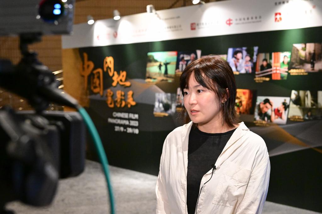 9月27日,“中國內地電影展2023”開幕電影《臍帶》導演喬思雪在香港文化中心接受記者采訪。新華社記者 朱煒 攝