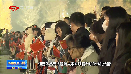 記者 石楚:現(xiàn)在是2024年1月1號早上的六點(diǎn)半,我們所在的位置是成都天府廣場,雖然說今天早上的氣溫只有6攝氏度,但是依然無法阻擋大家來觀看升旗儀式的熱情。