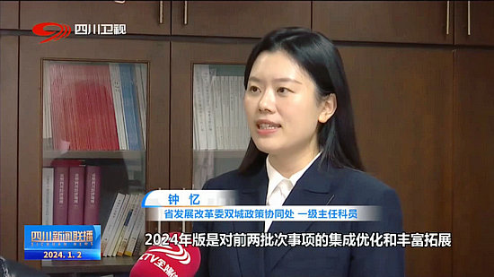 省發(fā)展改革委雙城政策協(xié)同處 一級主任科員 鐘憶:2024年版是對前兩批次事項的集成優(yōu)化和豐富拓展,包括10個方面39項重點事項,我們將持續(xù)加強與重慶方面的協(xié)同聯(lián)動,切實提高兩地群眾的幸福感、獲得感。