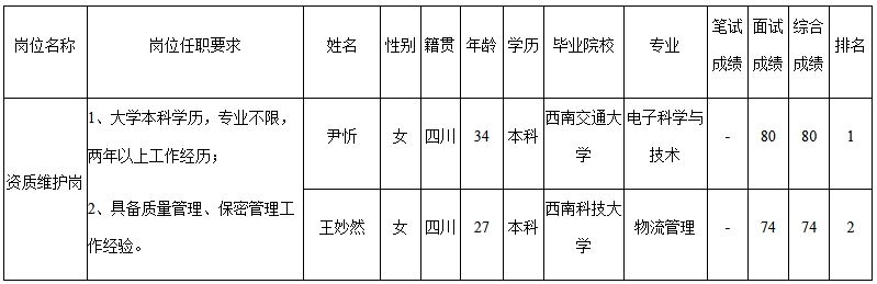 根據(jù)四川科瑞軟件有限責(zé)任公司發(fā)布的招聘公告及招聘相關(guān)規(guī)定,經(jīng)筆試、面試等程序,現(xiàn)將筆試(面試)成績(jī)予以公示。