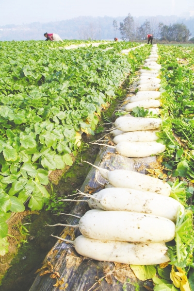 目前,在潼川鎮(zhèn)像代崇江這樣的蘿卜種植大戶共有3戶,白蘿卜種植面積已逾千畝。隨著產(chǎn)量的增加、品質(zhì)的提升,潼川鎮(zhèn)種植的白蘿卜在享譽周邊市場的同時,也逐漸端上重慶、北京、廣州等地的餐桌。
