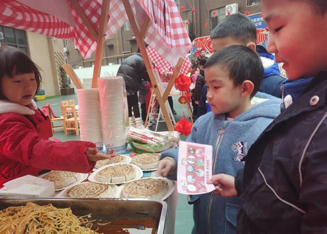 廟會當(dāng)天,孩子們穿上喜愛的衣服,在會場中穿梭,品味鹽亭美食——火燒饃、涼粉、涼面等,玩民間游戲——套圈、投壺,再一起做花燈、寫福字、掛祈愿帶,希望來年的自己健健康康。