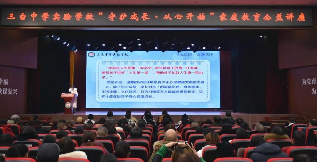 為了促進家長與孩子有效溝通,提升家庭教育質(zhì)量,加強家校聯(lián)系,形成家校教育合力,近日,三臺中學(xué)實驗學(xué)校成功舉行了以“守護成長•從心開始”為主題的家庭教育公益講座。