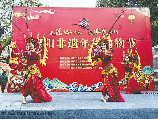 當(dāng)天上午,綿陽非遺年貨購物節(jié)舞臺展演活動在戲曲舞蹈《大國英姿》中拉開大幕,隨后,歌曲《媽在家就在》、葫蘆絲獨奏《月光下的鳳尾竹》、羌族舞蹈《羌家姑娘》、川劇絕技《變臉吐火》等精彩節(jié)目輪番上演,贏得現(xiàn)場觀眾掌聲連連,不少人拿起手機(jī)記錄精彩瞬間,并分享到朋友圈。
