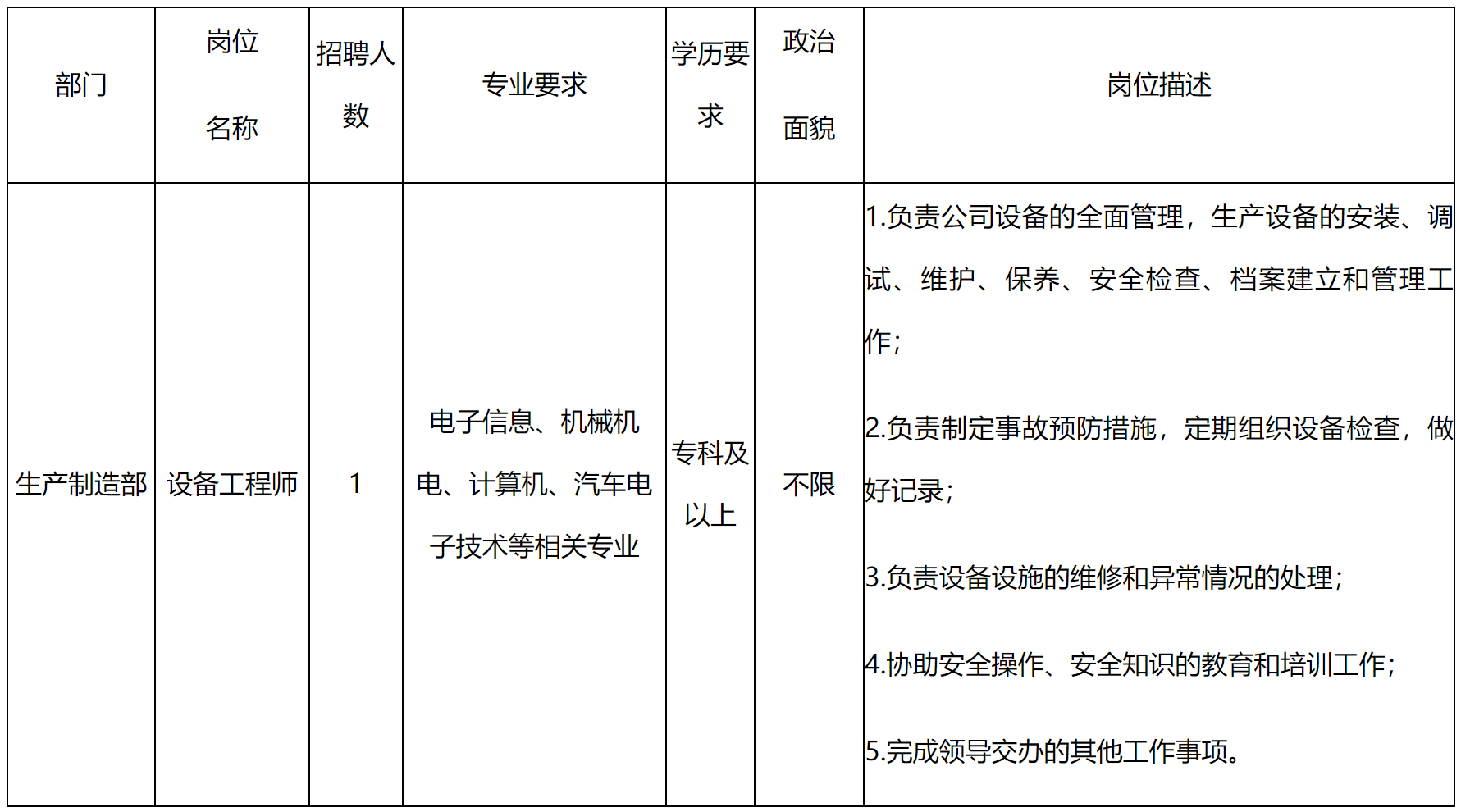 5.工作經(jīng)歷:具有電氣自動(dòng)化設(shè)備養(yǎng)護(hù)相關(guān)工作3年及以上經(jīng)驗(yàn)。
