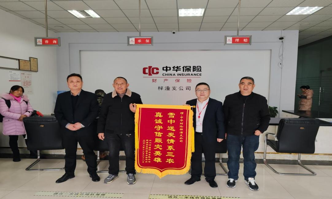 客戶向梓潼支公司贈送錦旗時說:“受病害的影響,今年我們減產(chǎn)嚴重,但在我們受災后的第一時間,中華財險梓潼支公司立即派人到現(xiàn)場進行查勘定損工作。多虧有保險公司給了我們理賠款,及時幫助我們解決困難,雪中送炭,感謝中華保險公司!”