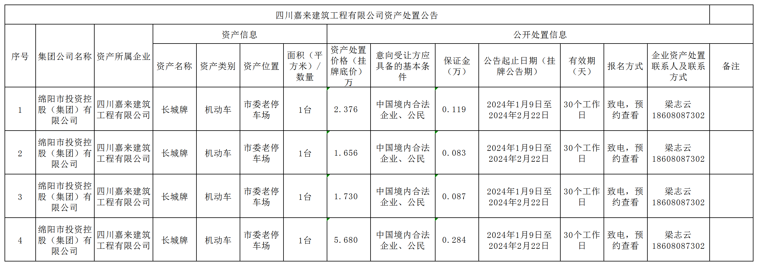 四川嘉來(lái)建筑工程有限公司資產(chǎn)處置公告